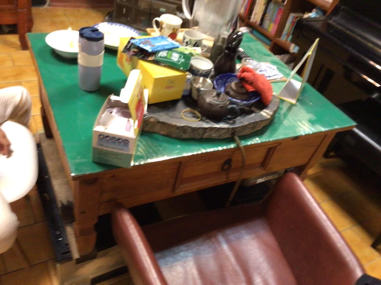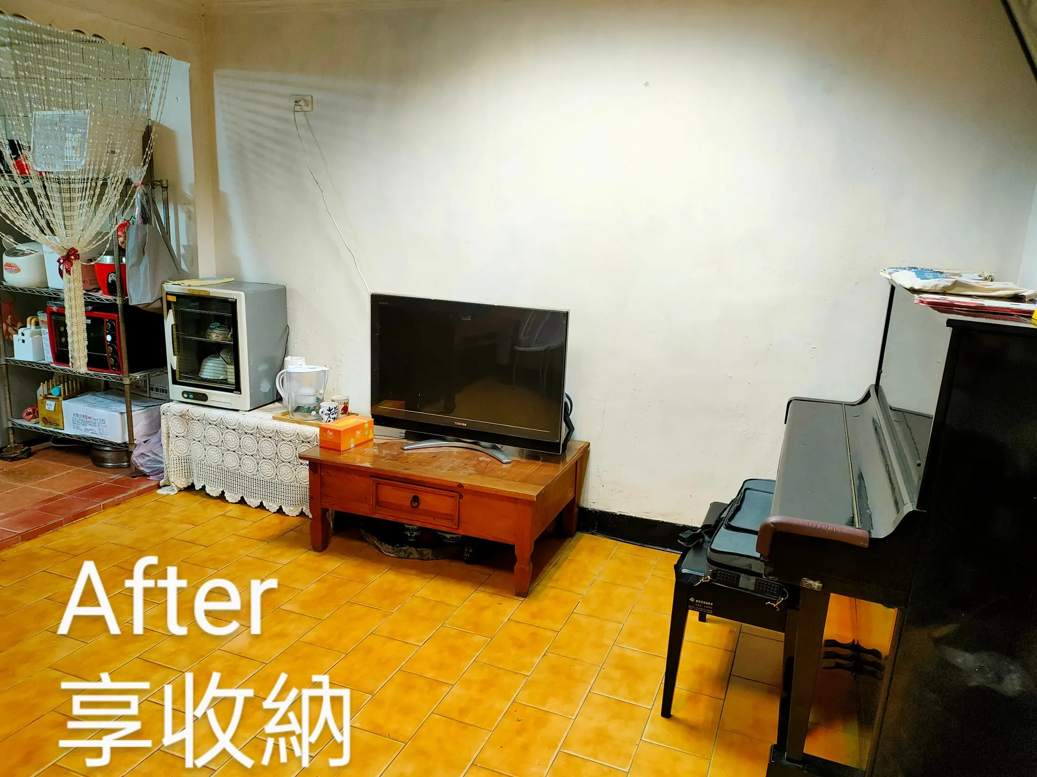 原本,委託人想把電視底下的箱子換成中間的木頭桌,但位子不變。