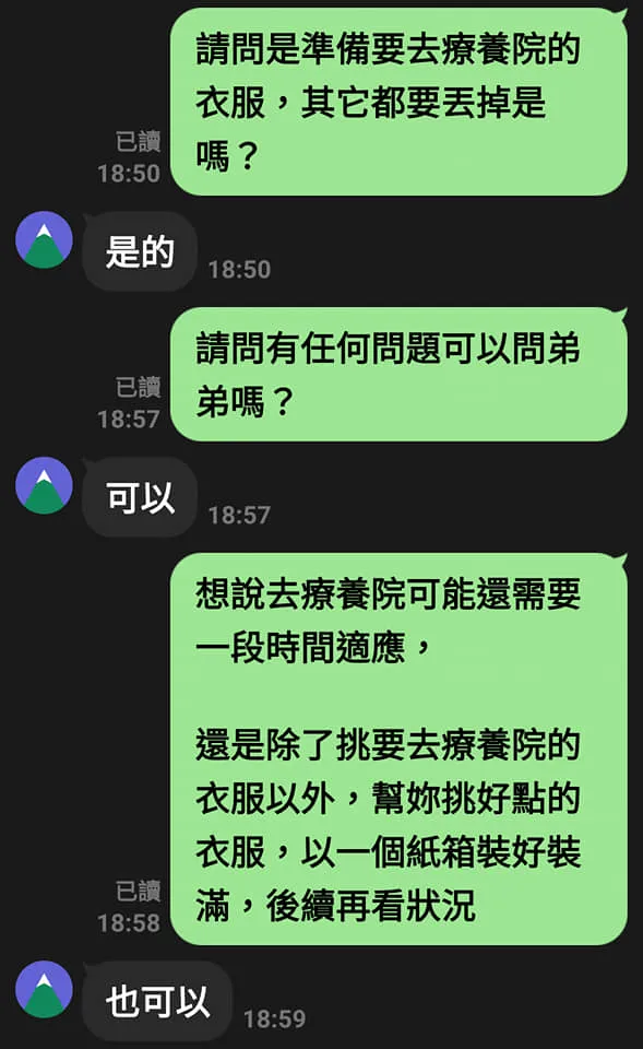 想整理幾套簡單帶去療養院的衣物,就把其他衣物都捨棄。