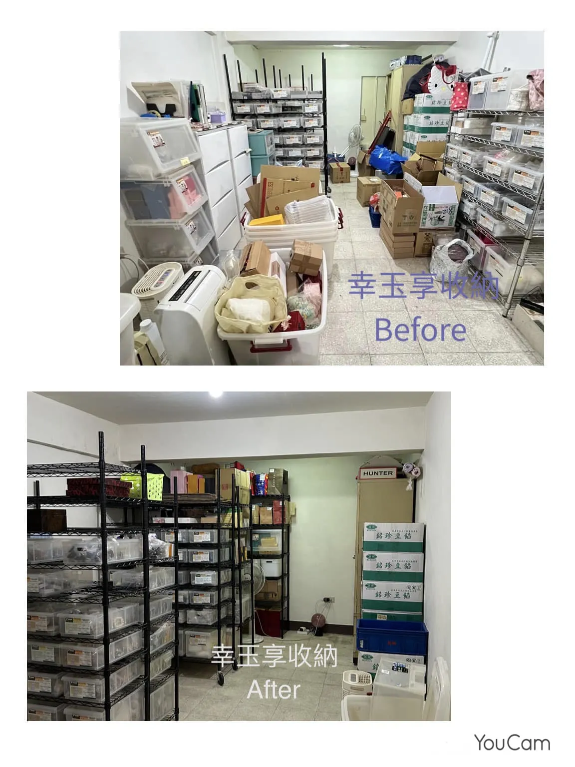 感恩客戶願意分享整理前後對比照片,這是個水晶飾品工作室的地下室,客戶面對這樣的狀況實在不知道從何整理。